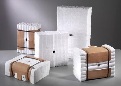 Este Módulo é um bloco de mantas de fibra cerâmica sendo fabricado para temperatura de 1260ºC e 1430ºC. Fornecido nas densidades entre 160 e 240 kg/m3 e espessuras entre 101 e 305mm.
